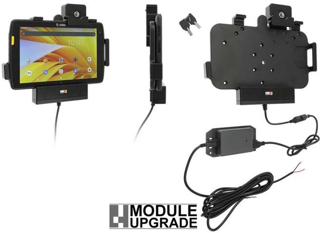 Uchwyt aktywny o wzmocnionej konstrukcji do Zebra ET45 8.0 z modułem komunikacyjno-ładującym i blokadą kluczykową.