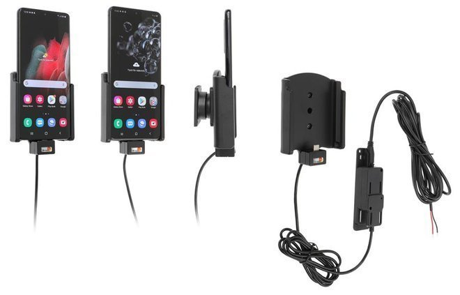 Uchwyt do Samsung Galaxy S21 Ultra z wbudowanym kablem USB oraz ładowarką samochodową