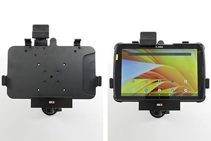 Uchwyt został wykonany z bardzo mocnego i wytrzymałego tworzywa ABS. Zamontuj go do dowolnej płaskiej powierzchni, w samochodzie ciężarowym, w magazynie, na wózku widłowym itp. Uchwyt posiada w swojej tylnej części standardowe otwory AMPS i VESA. Uchwyt nie ogranicza dostępu do kamery, wszystkich przycisków funkcyjnych i portów elektronicznych.