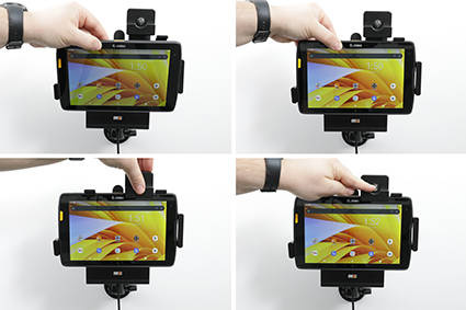 736317 - uchwyt aktywny o wzmocnionej konstrukcji z blokadą kluczykową do Zebra ET40 8.0. Jest specjalnie dopasowany do urządzeń, które nie są wyposażone w ochronną ramkę.
