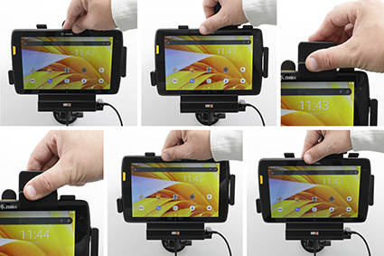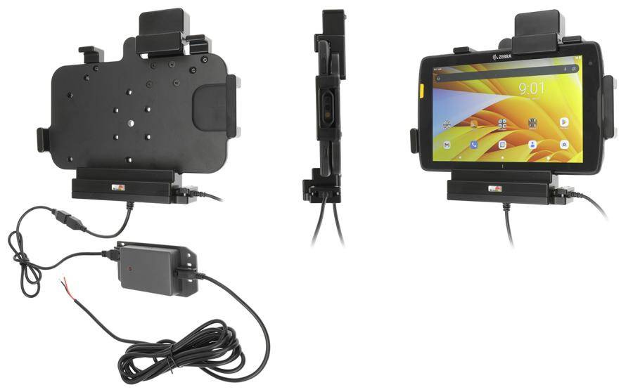 Uchwyt aktywny o wzmocnionej konstrukcji do Zebra ET40 8.0 z modułem komunikacyjno-ładującym i blokadą sprężynową.