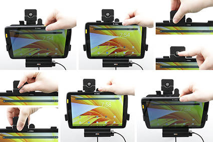 Uchwyt został wykonany z bardzo mocnego i wytrzymałego tworzywa ABS. Zamontuj go do dowolnej płaskiej powierzchni, w samochodzie ciężarowym, w magazynie, na wózku widłowym itp. Uchwyt posiada w swojej tylnej części standardowe otwory AMPS i VESA. Uchwyt nie ogranicza dostępu do kamery, wszystkich przycisków funkcyjnych i portów elektronicznych.