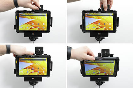 736318 - uchwyt aktywny o wzmocnionej konstrukcji z blokadą kluczykową do Zebra ET40 8.0. Jest specjalnie dopasowany do urządzeń, które są wyposażone w ochronną ramkę.
