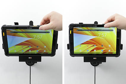 713320 - uchwyt aktywny o wzmocnionej konstrukcji do Zebra ET45 10.0. Jest specjalnie dopasowany do urządzeń, które są wyposażone w ochronną ramkę.