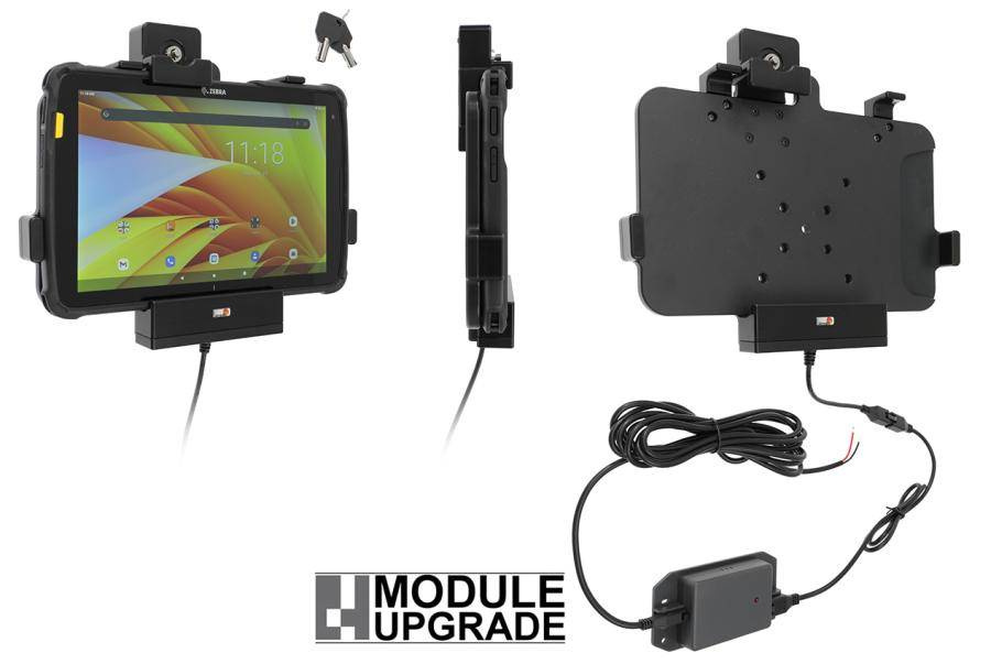 736320 - uchwyt aktywny o wzmocnionej konstrukcji z blokadą kluczykową do Zebra ET40 10.0. Jest specjalnie dopasowany do urządzeń, które są wyposażone w ochronną ramkę.