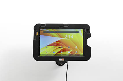 - 216320 - uchwyt aktywny o wzmocnionej konstrukcji z blokadą kluczykową do Zebra ET45 10.0, do montażu na ścianie. Jest specjalnie dopasowany do urządzeń, które nie są wyposażone w ochronną ramkę.