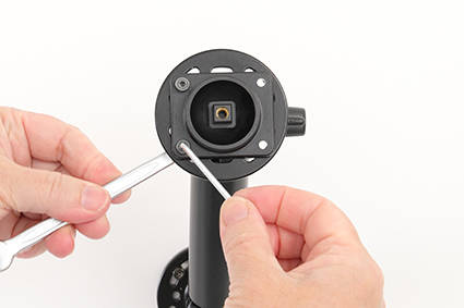 Wbudowana głowica obrotowa umożliwia jego regulację w różnych kierunkach w celu np. uniknięcia odbicia światła na ekranie. Można pochylać urządzeni o 17° oraz obracać o 360°. Płytka montażowa 42x50 z 4 otworami AMPS 4mm.