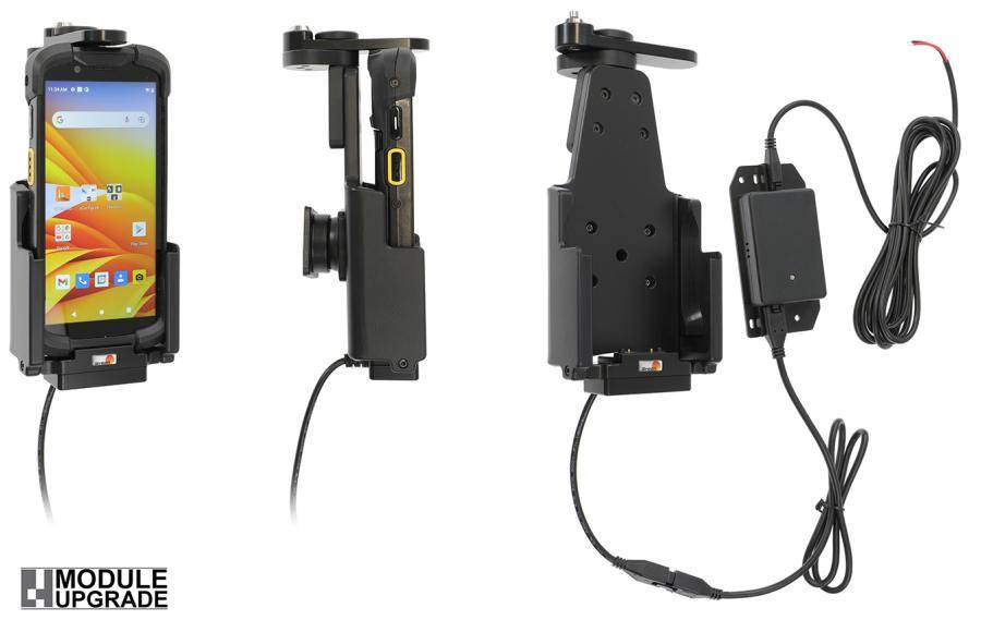 736310 - aktywny uchwyt z montowany pod stałą instalację 12/24V oraz z blokadą kluczykową . Pasuje do Zebra TC 73. Zawiera wbudowaną głowice obrotową, pasuje do urządzeń z opaską na rękę lub bez.