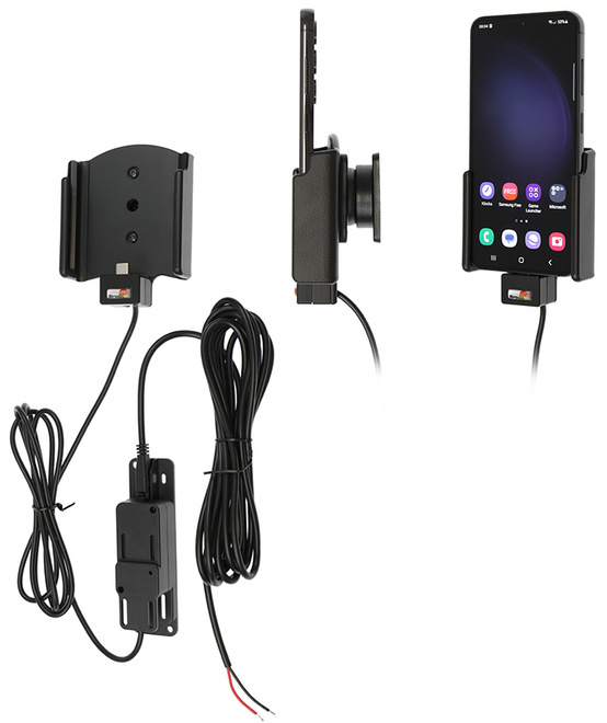 - 727344 - uchwyt aktywny do instalacji na stałe z głowicą obrotową, adapterem Molex oraz 2A ładowarką do Samsung Galaxy S23.