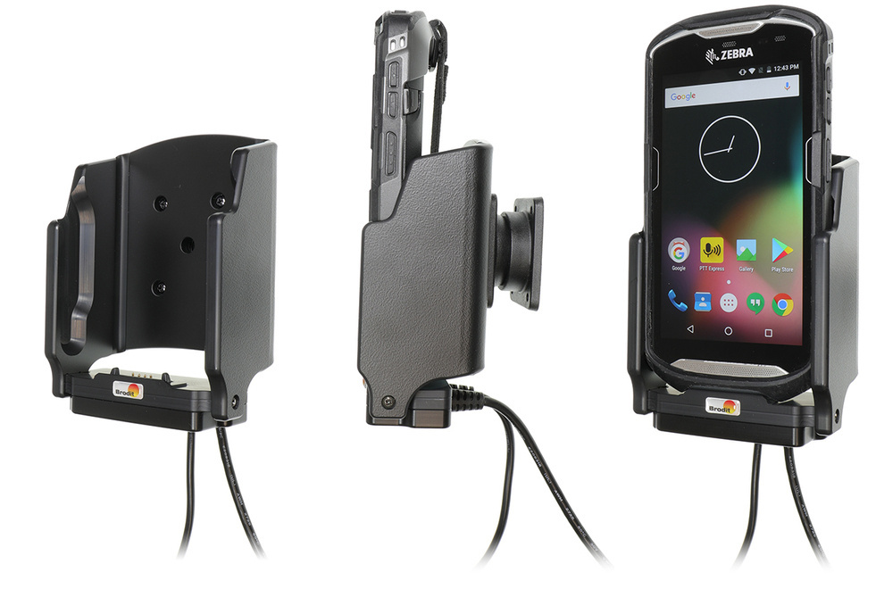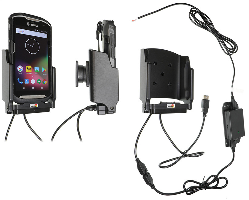 - 713049 - Brodit uchwyt aktywny do instalacji na stałe z adapterem Molex oraz 2A ładowarką do Zebra TC57. PASUJE do urządzeń w oryginalnym futerale ochronnym Zebra. Uchwyt wyposażony jest w dodatkowe złącze USB-A umożliwiające transmisje danych.