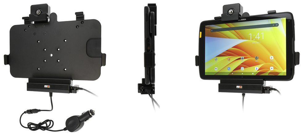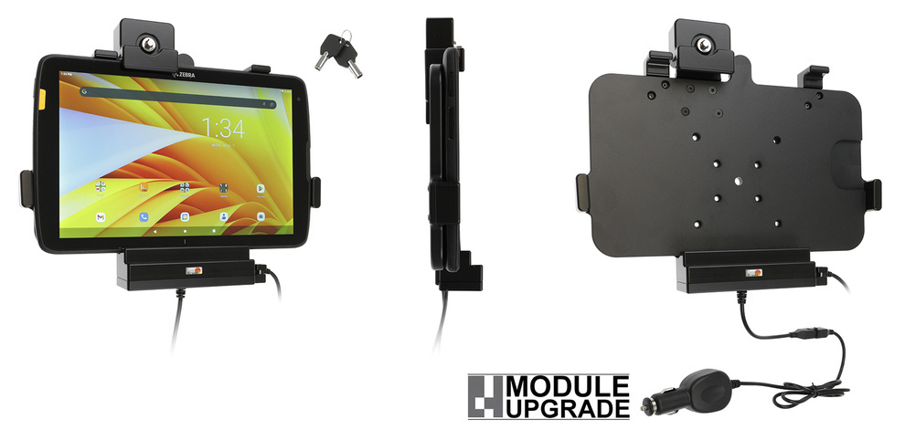 - 735326 - uchwyt aktywny o wzmocnionej konstrukcji do Zebra ET40 10.0 z blokadą kluczykową oraz obsługą urządzeń peryferyjnych. Jest specjalnie dopasowany do urządzeń, które NIE są wyposażone w ochronną ramkę/egzoszkielet.
