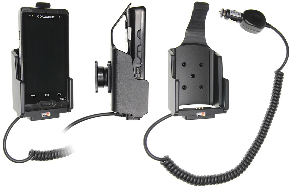 - 512833 - Uchwyt aktywny z ładowarką samochodową do Datalogic DL-Axist z dodatkową górną blokadą. NIE PASUJE do urządzeń z gumową obudową.