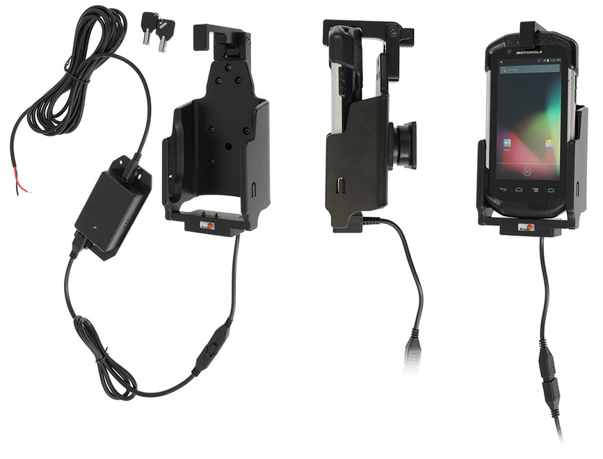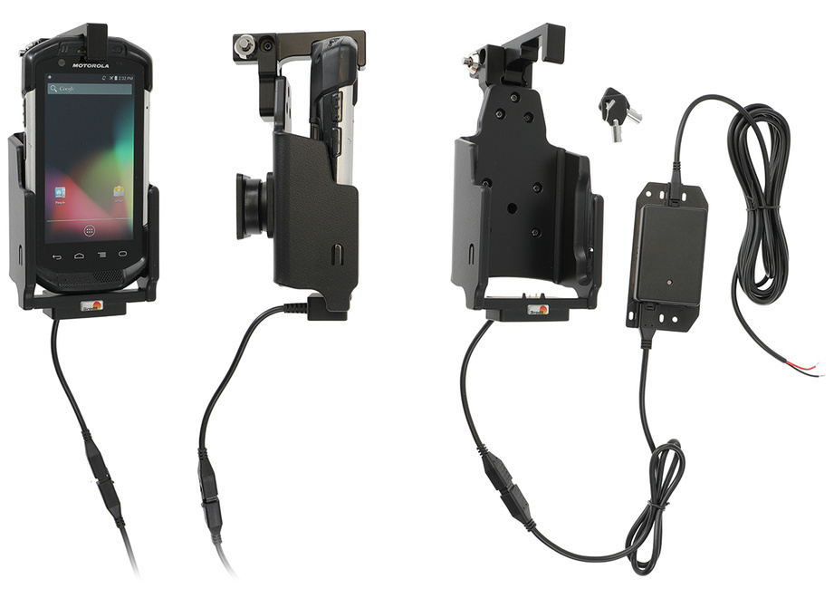 - 216248 - Brodit uchwyt aktywny do instalacji na stałe z głowicą obrotową, z blokadą kluczykową oraz adapterem Molex (2A ładowarką) do Zebra TC70.
