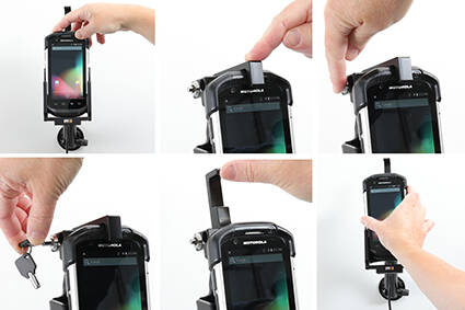 - Blokada kluczykowa uniemożliwia nieautoryzowanemu wyjęciu urządzenia z uchwytu.