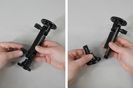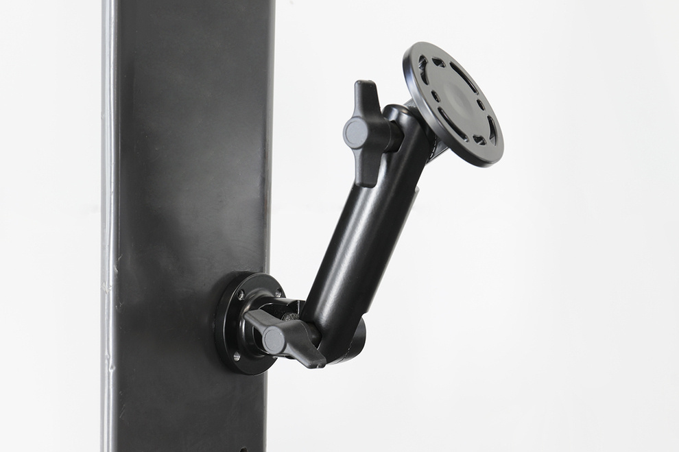 Podwójne ramię o długości 185 mm. Ramię zakończone jest z obydwu stron okrągłymi podstawami o średnicy 64 mm z otworami w systemie AMPS. Ramię idealnie nadaje się na wózki widłowe, ale także doskonale sprawdzi się w innych zastosowaniach. System obydwu podstaw ,którymi zakończone jest ramię opiera się o system ,,zębowy''. Regulacja wspomnianych podstaw odbywa się niezależnie za pomocą ,,motylków''.