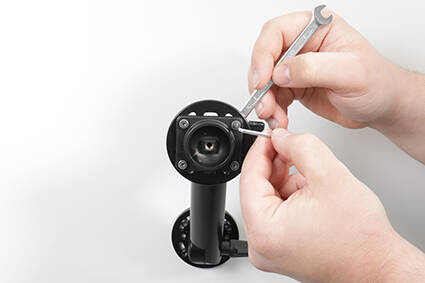 Wbudowana głowica obrotowa umożliwia jego regulację w różnych kierunkach w celu np. uniknięcia odbicia światła na ekranie. Można pochylać urządzeni o 17° oraz obracać o 360°. Płytka montażowa 42x50 z 4 otworami AMPS 4mm.