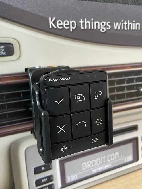 - Uchwyt został wykonany z tworzywa ABS w kolorze czarnym, które w trakcie kolizji samochodu nie łamie się na drobne, niebezpieczne kawałki.