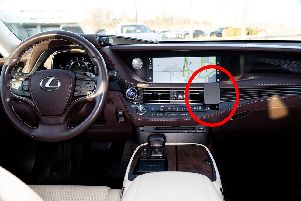 Wersja USA. 855997 wspornik montażowy do Lexus seria LS 2018-2026 do instalacji na desce rozdzielczej. Montaż centralny.