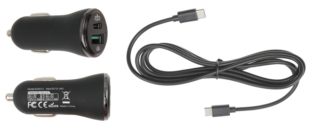 • 945031 - Brodit - Adapter do gniazdka zapalniczki samochodowej Porty USB-A i USB-C (żeńskie), obsługujące technologię Qualcomm Quick Charge 3.0 + 5V/2.4A. Z kablem typu C do typu C, o długości 1,5 metra.