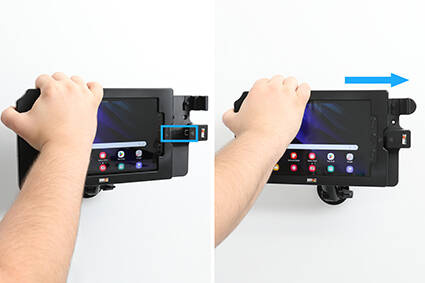 Podwyższone punkty montażowe pozwalają na dodatkową stabilność, a szybkie zwalnianie dźwigni umożliwia łatwe dokowanie i odłączanie jedną ręką.