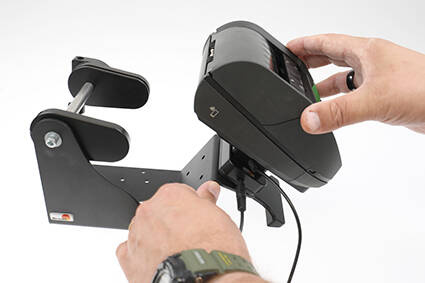 Ten uchwyt umożliwia łatwy i bezpieczny montaż drukarki w dobrze widocznym i łatwo dostępnym miejscu przez cały dzień pracy. Dzięki przesuwanemu blokowi zasilającemu z wejściem DC 3,5 mm, zapewnia stałe zasilanie i zawsze naładowany akumulator. Produkty Brodit łączą funkcjonalność i wygodę, co przyczynia się do poprawy warunków pracy. Uchwyt wykonany na zamówienie gwarantuje idealne i solidne dopasowanie. Szybko łączący adapter MultiMoveClip umożliwia łatwe przenoszenie drukarki między różnymi miejscami. Może być zamocowany na stojaku lub płaskiej powierzchni.