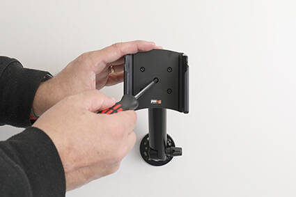 Dzięki zamocowaniu terminalu w pasywnym uchwycie na desce rozdzielczej, urządzenie jest zawsze pod ręką – bezpieczne i wygodne. Uchwyt zamontowany na przegubie obrotowym umożliwia regulację, co pozwala uniknąć odbić światła na ekranie. Włożenie i wyjęcie terminalu z uchwytu jest proste, a w trakcie korzystania można podłączyć do urządzenia np. kabel ładujący.