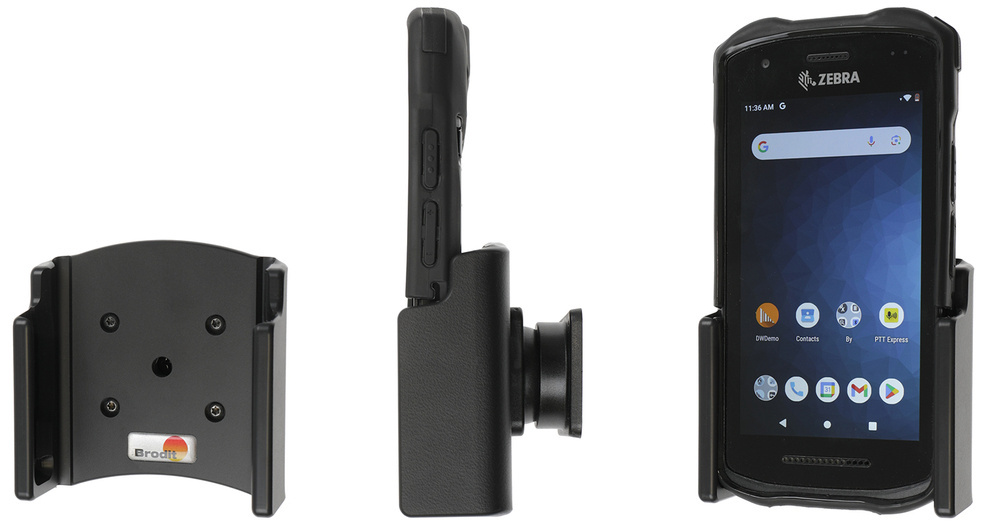 - 711350 - Brodit uchwyt pasywny z głowicą obrotową do Zebra TC21 dopasowany do urządzeń w obudowie Mobilis o numerze 065001.