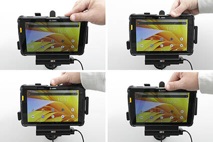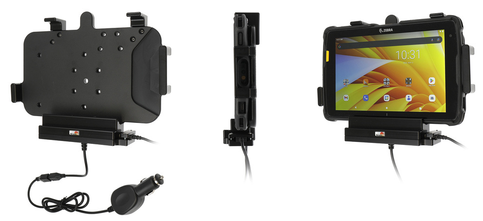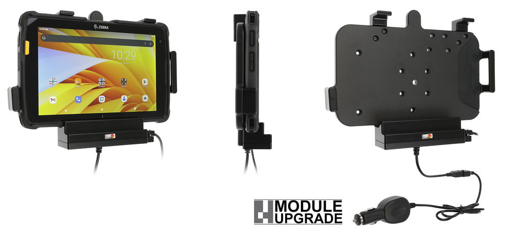 - 712324 - Brodit uchwyt aktywny do Zebra ET45 8.0 z wtykiem do gniazda zapalniczki. Pasuje do urządzeń z obudową Rugged Boot / Exoskeleton. Z AMPS, otworami VESA 75. Stacja dokująca do aktualizacji modułów. Z systemem łatwego przełączania i hostem USB.