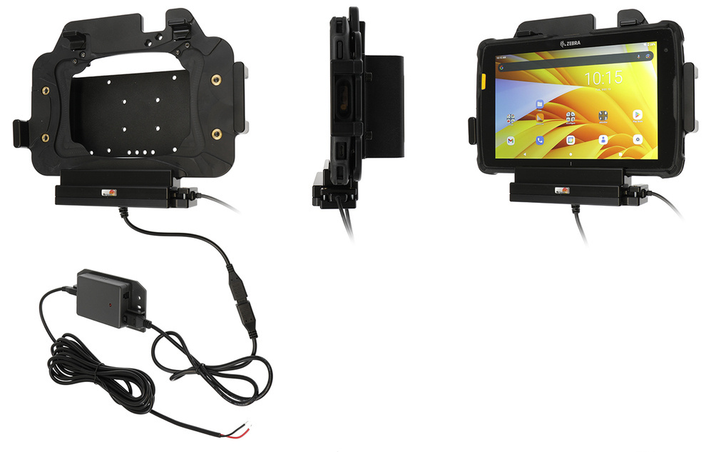 - 713331 Brodit uchwyt aktywny do instalacji stałej do Zebra ET40 8.0. Pasuje do urządzeń z obudową Rugged Boot/Exoskeleton, oryginalnym grzbietem rozszerzającym Zebra. Stacja dokująca do aktualizacji modułów. Z systemem łatwego przełączania i hostem USB.