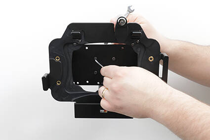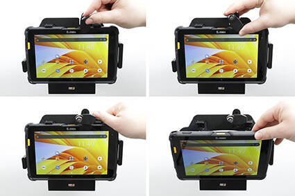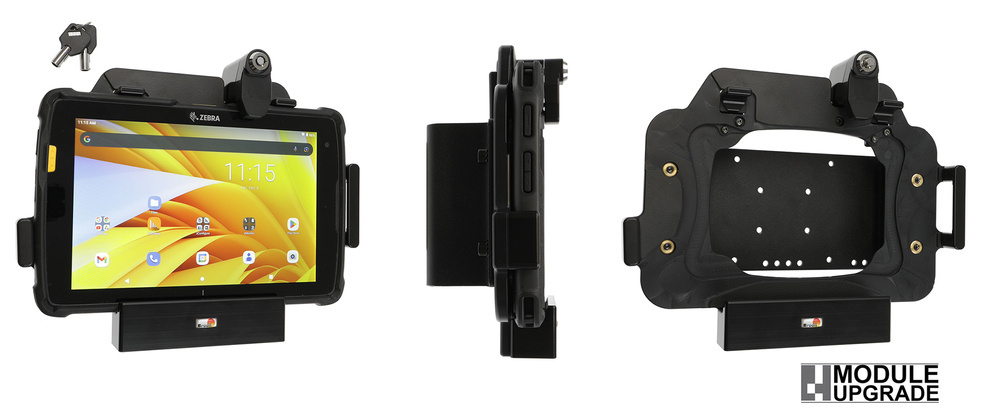 - 739330 - Brodit uchwyt z zamkiem na klucz do Zebra ET45 8.0. Pasuje do urządzeń z Rugged Boot / Exoskeleton, oryginalną nakładką Zebra. Z AMPS, otworami VESA 75. Podstawka do rozbudowy modułu.