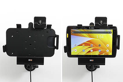 - 746317 Brodit uchwyt aktywny z blokadą sprężynową do Zebra ET40 8.0 z wtykiem do gniazda zapalniczki. Pasuje do urządzeń z obudową Rugged Boot/Exoskeleton. Z AMPS, otworami VESA 75. Stacja dokująca do aktualizacji modułów. Z systemem łatwego przełączania.