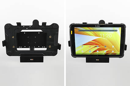 - 710332 - Brodit uchwyt pasywny do Zebra ET45 10.0. Pasuje do urządzeń z Rugged Boot / Exoskeleton, oryginalnym grzbietem rozszerzającym Zebra. Z AMPS, otworami VESA 75. Stacja dokująca do aktualizacji modułów.