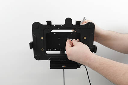 Uchwyt można przymocować do dowolnej płaskiej powierzchni lub do Pedestal Mount wózka widłowego, ciężarówki, pojazdu dystrybucyjnego, magazynu, blatu stołu itp. Płyta tylna wykonana ze stali z otworami 4 mm AMPS i 4 mm VESA 75. Wykonany z wysokiej jakości tworzywa ABS, acetalu i metalu. Kolor: czarny. Wyprodukowano w Szwecji.