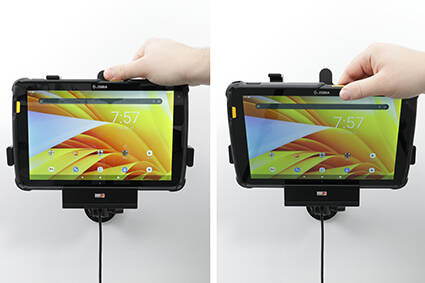 - 712320 - Brodit uchwyt aktywny z wtykiem do gniazda zapalniczki do Zebra ET45 10.0. Pasuje do urządzeń z Rugged Boot / Exoskeleton. Z AMPS, otwory VESA 75. Stacja dokująca do aktualizacji modułów. Z systemem łatwego przełączania.