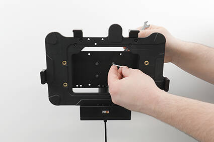 • 713332 - Brodit uchwyt aktywny do instalacji stałej do Zebra ET40 10.0. Pasuje do urządzeń z Rugged Boot / Exoskeleton, oryginalnym grzbietem rozszerzającym Zebra. Stacja dokująca do aktualizacji modułów. Z systemem łatwego przełączania.