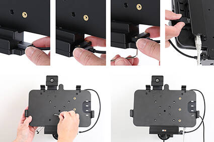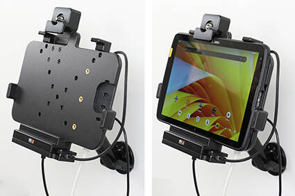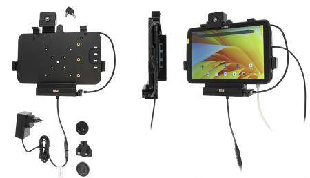 • 216491 - Brodit uchwyt aktywny, kablem zasilającym, adapterem ściennym i 2 kluczami do Zebra ET45 10.0. Port USB typu A, system łatwego przełączania, ładowanie przez piny pogo. Otwory AMPS i VESA 75. Pasuje do urządzeń bez Rugged Boot/Exoskeleton.
