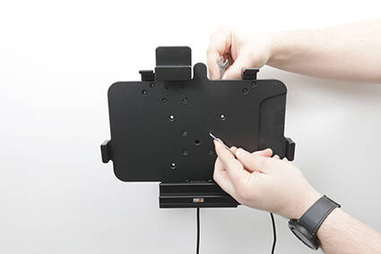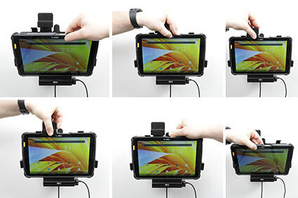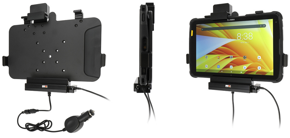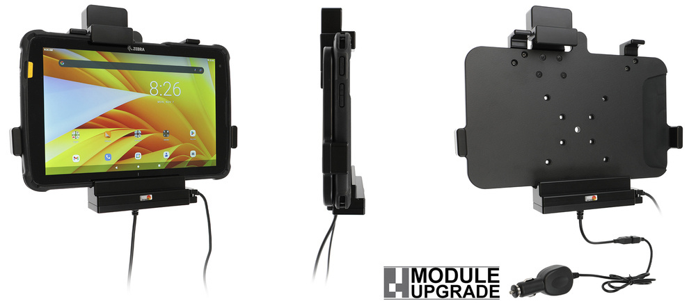 - 746326 - Brodit uchwyt aktywny z blokadą sprężynową i z wtyczką do gniazda zapalniczki do Zebra ET45 10.0. Pasuje do urządzeń z Rugged Boot / Exoskeleton. Stacja dokująca do aktualizacji modułów. Z systemem łatwego przełączania i hostem USB.