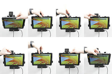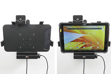 - 735326 - uchwyt aktywny o wzmocnionej konstrukcji do Zebra ET45 10.0 z blokadą kluczykową oraz obsługą urządzeń peryferyjnych. Jest specjalnie dopasowany do urządzeń, które są wyposażone w ochronną ramkę/egzoszkielet.