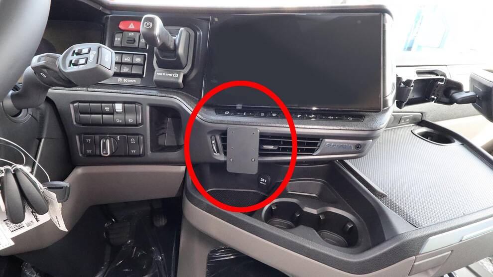 • 856110 wspornik do Scania seria L 2025-2026 do instalacji na desce rozdzielczej. Montaż centralny.