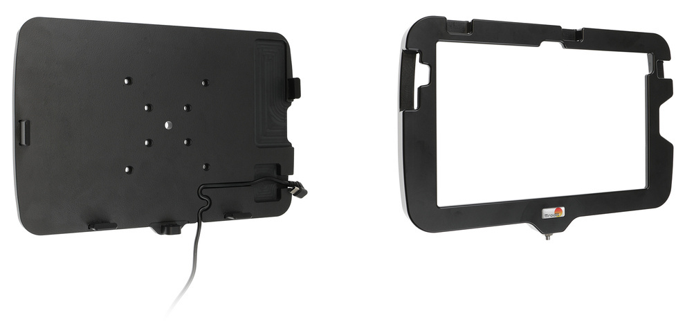 Ten uchwyt został zaprojektowany z myślą o ochronie tabletu, jednocześnie umożliwiając łatwy dostęp do urządzenia. Doskonale sprawdza się w sklepach, na wystawach i w innych miejscach, gdzie korzystanie z tabletu nie wymaga częstego wyjmowania. Uchwyt wykonany jest z niezwykle trwałego tworzywa sztucznego i posiada zamek, do którego dołączone są dwa klucze. Aby wyjąć tablet, konieczne jest użycie jednego z nich. Dodatkowo, w zestawie znajduje się kabel zasilający oraz adapter do gniazdka, co zapewnia stałe ładowanie urządzenia i gotowość do pracy.