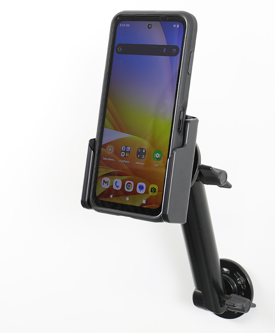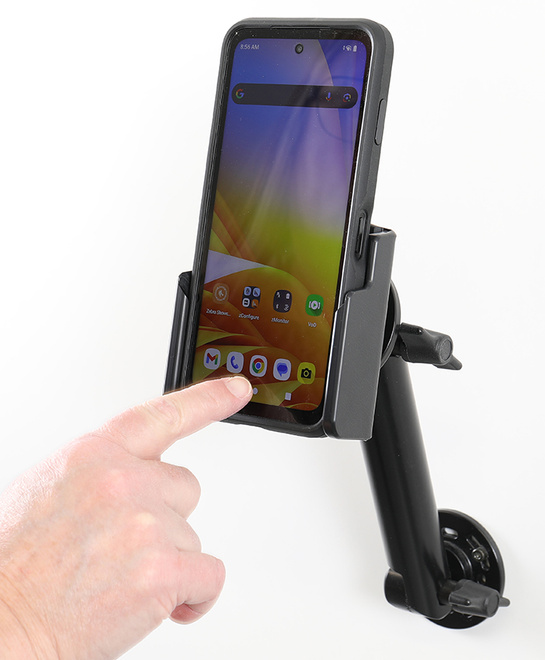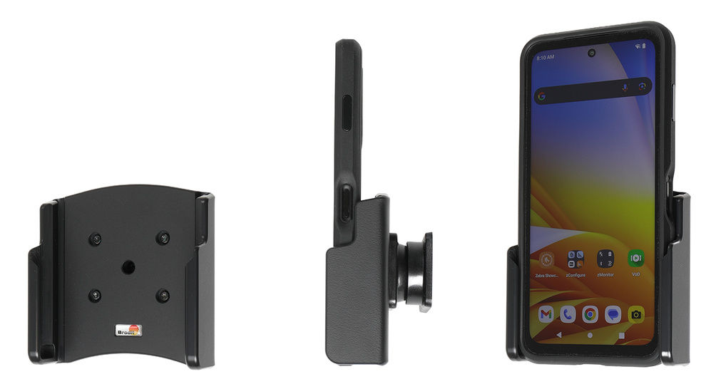Uchwyt Brodit (Art.711412) został zaprojektowany z myślą o terminalu Zebra EM45 w etui, zapewniając wygodne, stabilne i bezpieczne umiejscowienie urządzenia w zasięgu ręki. Dzięki mechanizmowi Tilt Swivel, uchwyt umożliwia łatwą regulację kąta nachylenia (17°) oraz obrót o 360°, co pozwala na optymalne ustawienie terminala w zależności od preferencji użytkownika. Uchwyt zapewnia pełny dostęp do przycisków, portów i kamery, a także pozwala na wygodne podłączenie kabla ładowania lub słuchawek, gdy urządzenie znajduje się w uchwycie. Wykonany z wytrzymałego plastiku ABS/Acetal, gwarantuje dużą odporność na uszkodzenia. Dzięki płycie montażowej AMPS (42x50 mm) z otworami o średnicy 4 mm, uchwyt można łatwo zamontować na platformie ProClip lub Pedestal Mount.