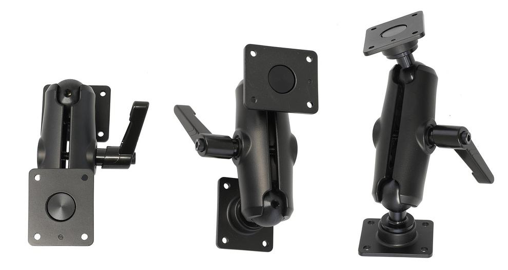 Podwójne ramię o długości 153 mm, osadzone na przegubach kulowych blokowanych centralnie za pomocą dźwigni dzięki której można w bardzo prosty i szybki sposób wyregulować mocowanie bez pomocy narzędzi. Ramię zakończone jest z obu stron kwadratowymi podstawami o wymiarach 50x42mm z wstępnie nawierconymi otworami w systemie AMPS. Idealnie nadaje się na wózki widłowe, ale także doskonale sprawdzi się w innych zastosowaniach. Ramię posiada szeroki zakres regulacji, który wynosi 360 stopni w poziomie, a także 210 stopni jeśli chodzi o pozycje wertykalną bądź horyzontalną.