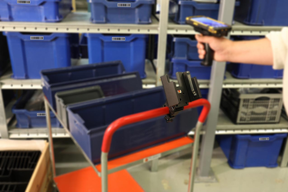 Stabilnie trzyma terminal z osłoną i chwytem pistoletowym, dzięki czemu urządzenie jest bezpieczne podczas jazdy.