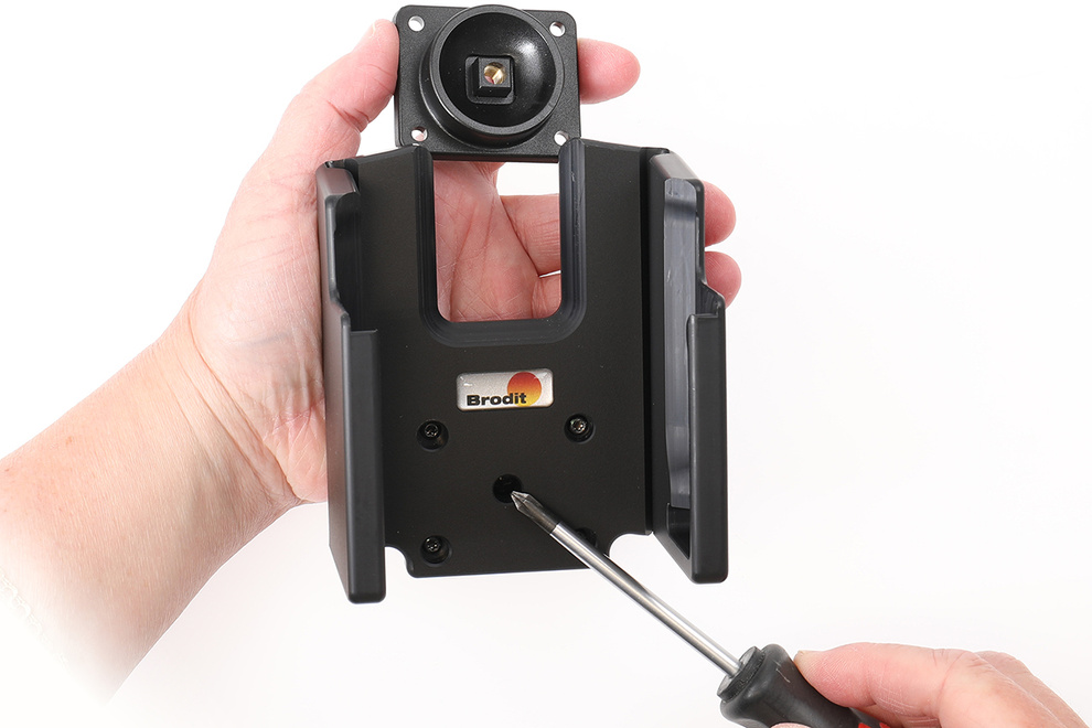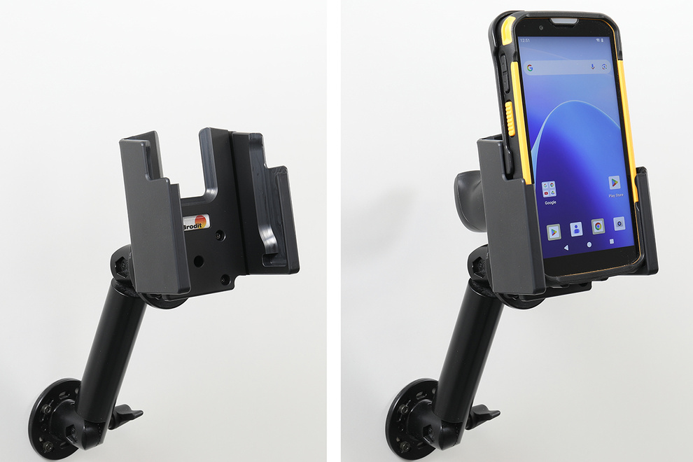 Uchwyt Brodit 711440 to solidne i wygodne rozwiązanie do mocowania terminali mobilnych z osłoną Protective Rubber Boot oraz chwytem pistoletowym. Idealny dla firm i flot, które potrzebują bezpiecznego miejsca na urządzenie w samochodzie.