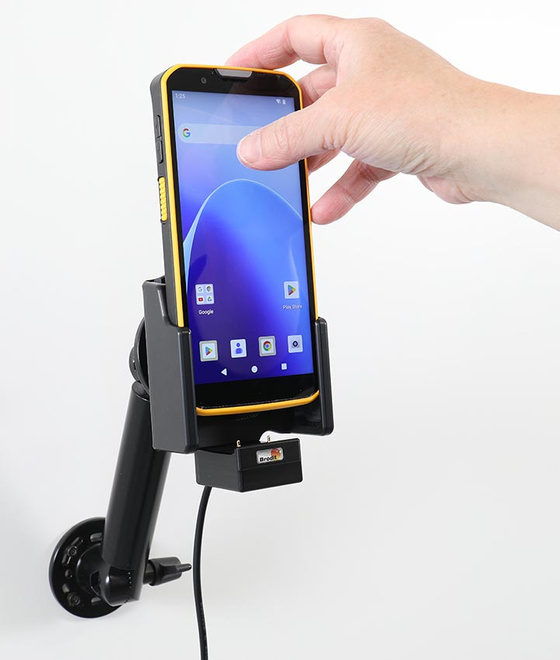 Wbudowany mechanizm typu tilt-swivel umożliwia regulację kąta nachylenia urządzenia w zakresie 17 stopni oraz pełny obrót o 360 stopni. Pozwala to w prosty sposób ustawić ekran w pozycji pionowej lub poziomej, w zależności od preferencji użytkownika lub specyfiki wykonywanej pracy. Dzięki temu korzystanie z map, aplikacji czy funkcji skanowania jest wygodniejsze i bezpieczniejsze – szczególnie w trakcie jazdy.