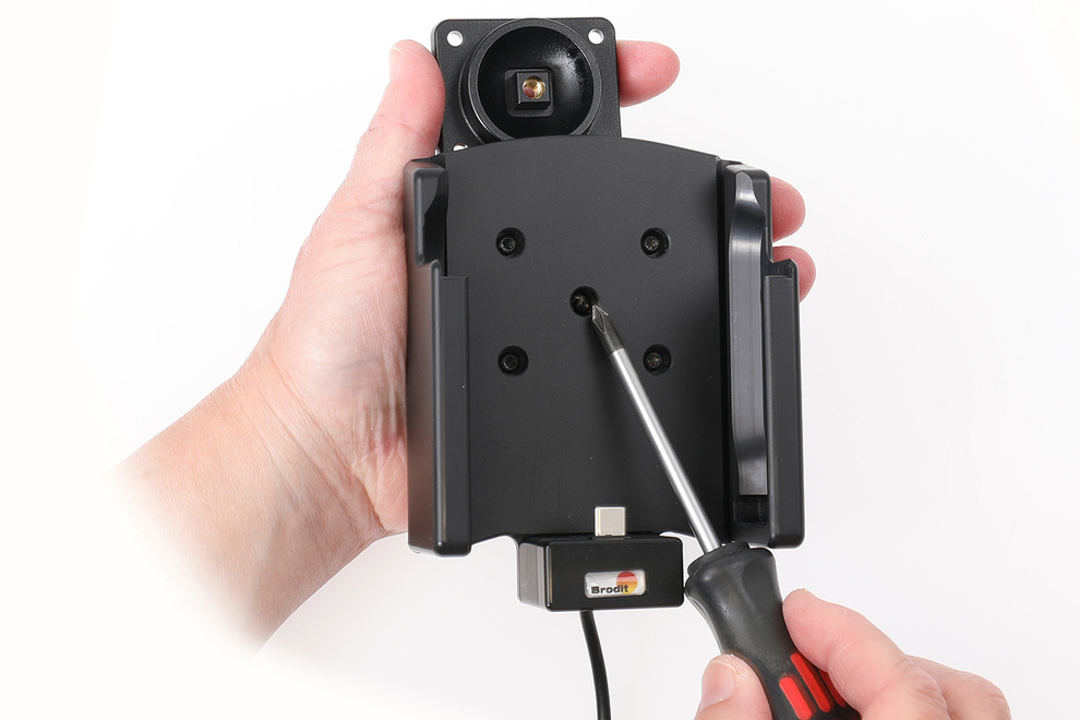 Profesjonalny uchwyt ładujący z trwałym, zintegrowanym zasilaniem – zaprojektowany z myślą o zastosowaniach przemysłowych i flotowych, gdzie kluczowe są niezawodność, estetyka montażu oraz pełne bezpieczeństwo użytkowania urządzeń mobilnych.