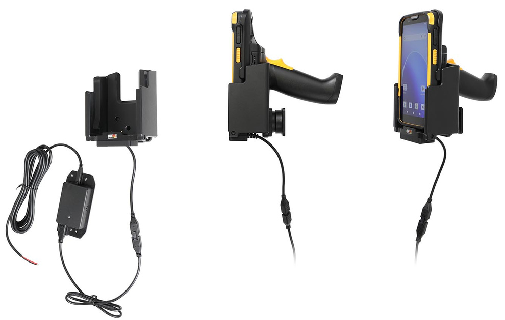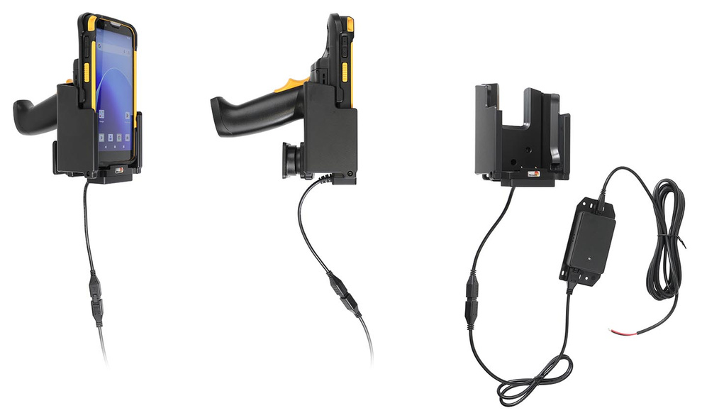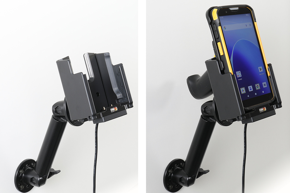 Brodit ActivePro RS38 to uchwyt stworzony z myślą o profesjonalnych użytkownikach urządzenia CipherLab RS38 w wersji z osłoną gumową (PRS3800X01507) i uchwytem pistoletowym (ARS38PSTNNN11). Umożliwia twardą instalację z ukrytym zasilaniem 12/24 V, eliminując plątaninę przewodów w kabinie pojazdu i zwiększając bezpieczeństwo podczas jazdy.
