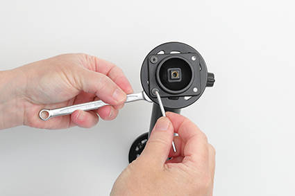 W komplecie znajdują się wszystkie elementy niezbędne do instalacji - płytka montażowa, śruby oraz głowica obrotowa, co pozwala na natychmiastowe przygotowanie uchwytu do użytku.
