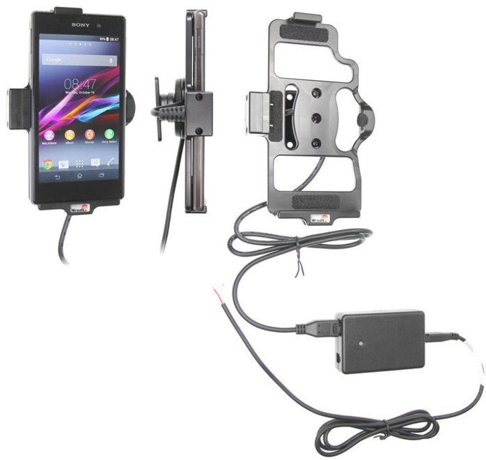- 513566 - uchwyt aktywny do instalacji na stałe z głowicą obrotową, adapterem Molex oraz 2A ładowarką do Sony Xperia Z1.