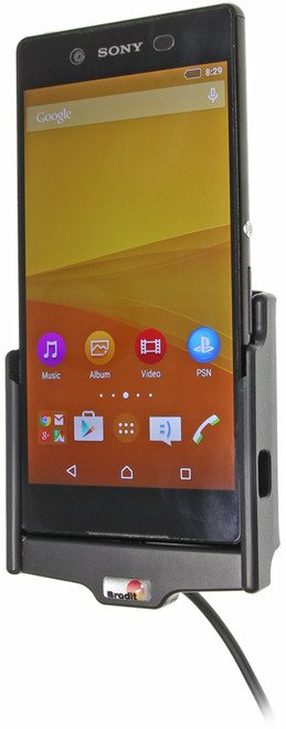 - 513751 - uchwyt aktywny do instalacji na stałe z głowicą obrotową, adapterem Molex oraz 2A ładowarką do Sony Xperia Z3+.